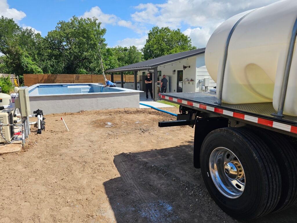 Simple Water Solutions Team delivering clean, fresh water for a new pool fill in Liberty Hill, TX.